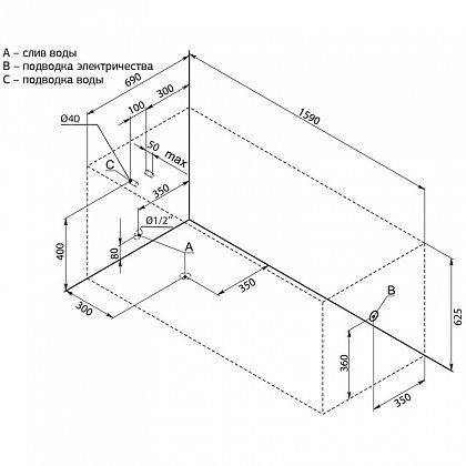 - Размер: 160x70x63,3 см. Глубина: 44,8 см. Объем: 195 л.