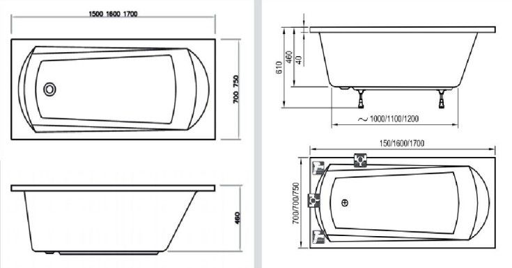 - Стандартные размеры, см:170x75