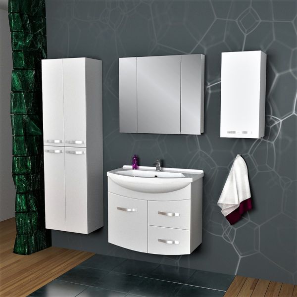 Пенал для коллекций Alfa, Almi. Фасад белый лак МДФ. Стеклянные полки с возможностью перестановки полок по высоте. Подвесной/напольный. В комплект для установки на пол нужно докупить ножки QL. Левый/Правый (перевешиваются дверцы)