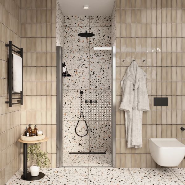 • Душевая дверь помогает зонировать помещение на отдельные функциональные участки.