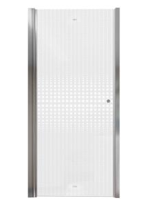 Дверь открывается только в одну сторону.Распашная дверь образует вход комфортной ширины. Модель из прозрачного закаленного стекла (5 мм) с дизайнерским рисунком. Полотно из закаленного стекла устойчиво к случайным ударам. В случае битья, стекло рассыпается на множество мелких граней с тупыми концами.Полированный хромированный профиль из алюминия не деформируется при высокой влажности и смене температуры.Ширину можно регулировать за счет увеличения алюминиевого профиля в пределах 69,5–71,5 смДостоинства душевой двери: