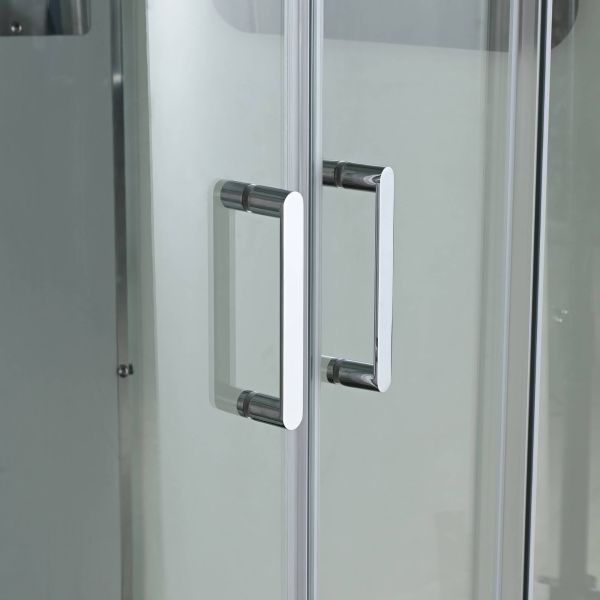 Стильная душевая кабина AvaCan сочетает в себе высокую функциональность, практичность и надежность. При изготовлении применяется безопасное закаленное стекло, надежно фиксируемое алюминиевым профилем. Профиль сделан из алюминия повышенной прочности. Сборка без силикона (увеличивает срок службы, защищает от протечек), внутренняя сборка (облегчает установку и ревизию; позволяет установить в ограниченном пространстве и обойтись без демонтажа других сантехнических приборов), смеситель резьбовой (без хомутов). Съемный экран поддона (позволяет осуществлять подключение и ревизию сифона).Двойные металлические ролики дверей (распределение нагрузки на два ролика, увеличивают срок службы). Душевая штанга(позволяет регулировать по высоте ручную лейку), ручная арома-лейка с витамином С (картридж в комплекте,есть возможность замены или удаления картриджа), полочки(из стекла, с ограничителем), сифон с гидрозатвором.