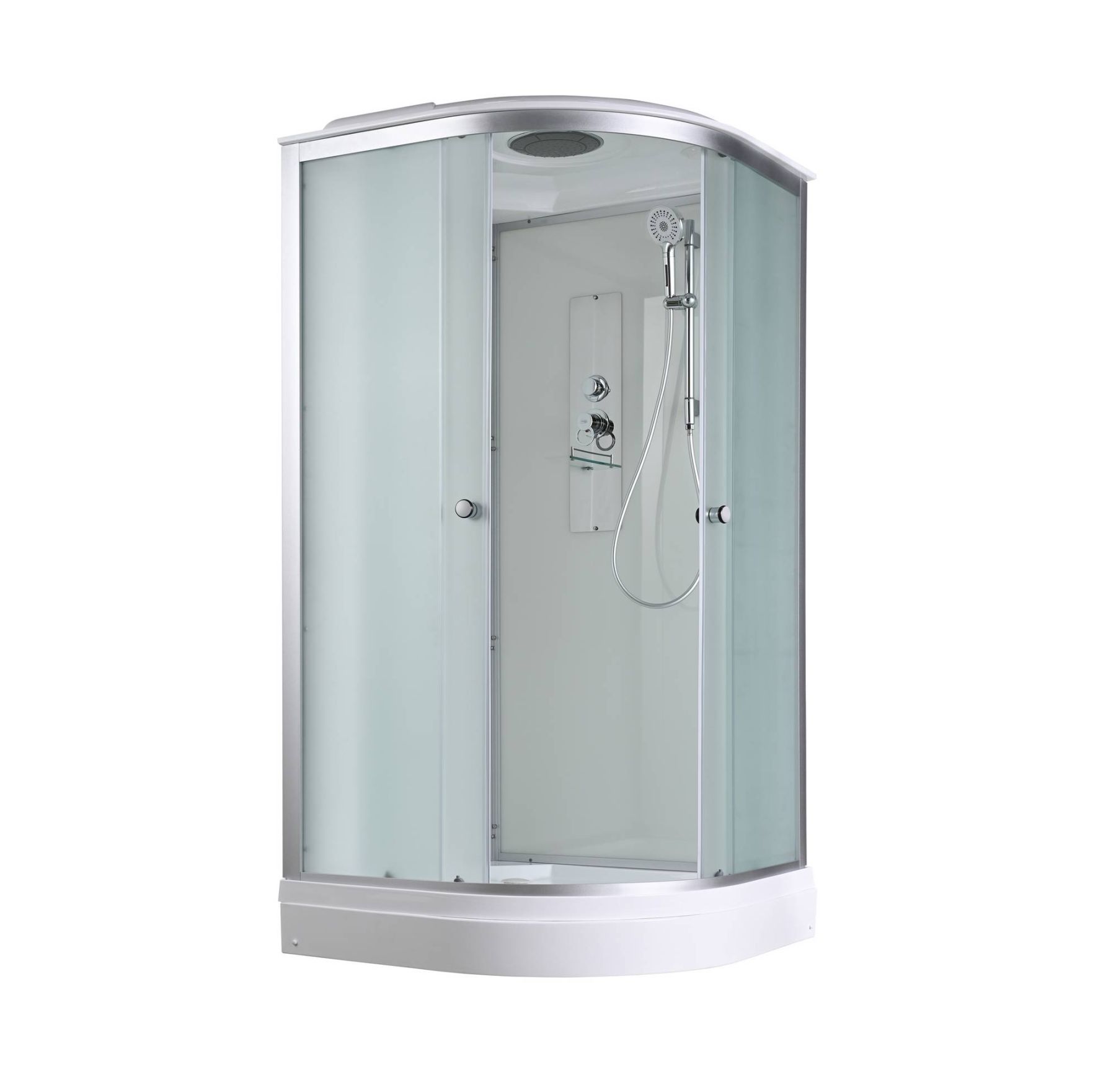 Стильная душевая кабина AvaCan D 2090  сочетает в себе высокую функциональность, практичность и надежность. При изготовлении применяется безопасное закаленное стекло толщиной 4 мм (матовое), надежно фиксируемое алюминиевым профилем. Сборка без силикона (увеличивает срок службы), внутренняя сборка (облегчает установку и ревизию, позволяет установить душевую кабину в ограниченном пространстве),смеситель резьбовой (без хомутов), съемный экран поддона (позволяет осуществлять ревизию сифона), цвет профиля матовый хром. Двойные металлические ролики дверей (увеличивают срок службы).В комплекте : душевая штанга, полочка, тропический (верхний) душ, арома-лейка с витамином С (картридж съемный).