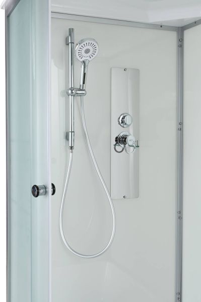 Стильная душевая кабина AvaCan D 5010 сочетает в себе высокую функциональность, практичность и надежность. При изготовлении применяется безопасное закаленное стекло толщиной 4 мм (матовое), надежно фиксируемое алюминиевым профилем. Сборка без силикона (увеличивает срок службы), внутренняя сборка (облегчает установку и ревизию, позволяет установить душевую кабину в ограниченном пространстве),смеситель резьбовой (без хомутов), съемный экран поддона (позволяет осуществлять ревизию сифона), цвет профиля матовый хром. Двойные металлические ролики дверей (увеличивают срок службы).В комплекте : душевая штанга, полочка, тропический (верхний) душ, арома-лейка с витамином С (картридж съемный).