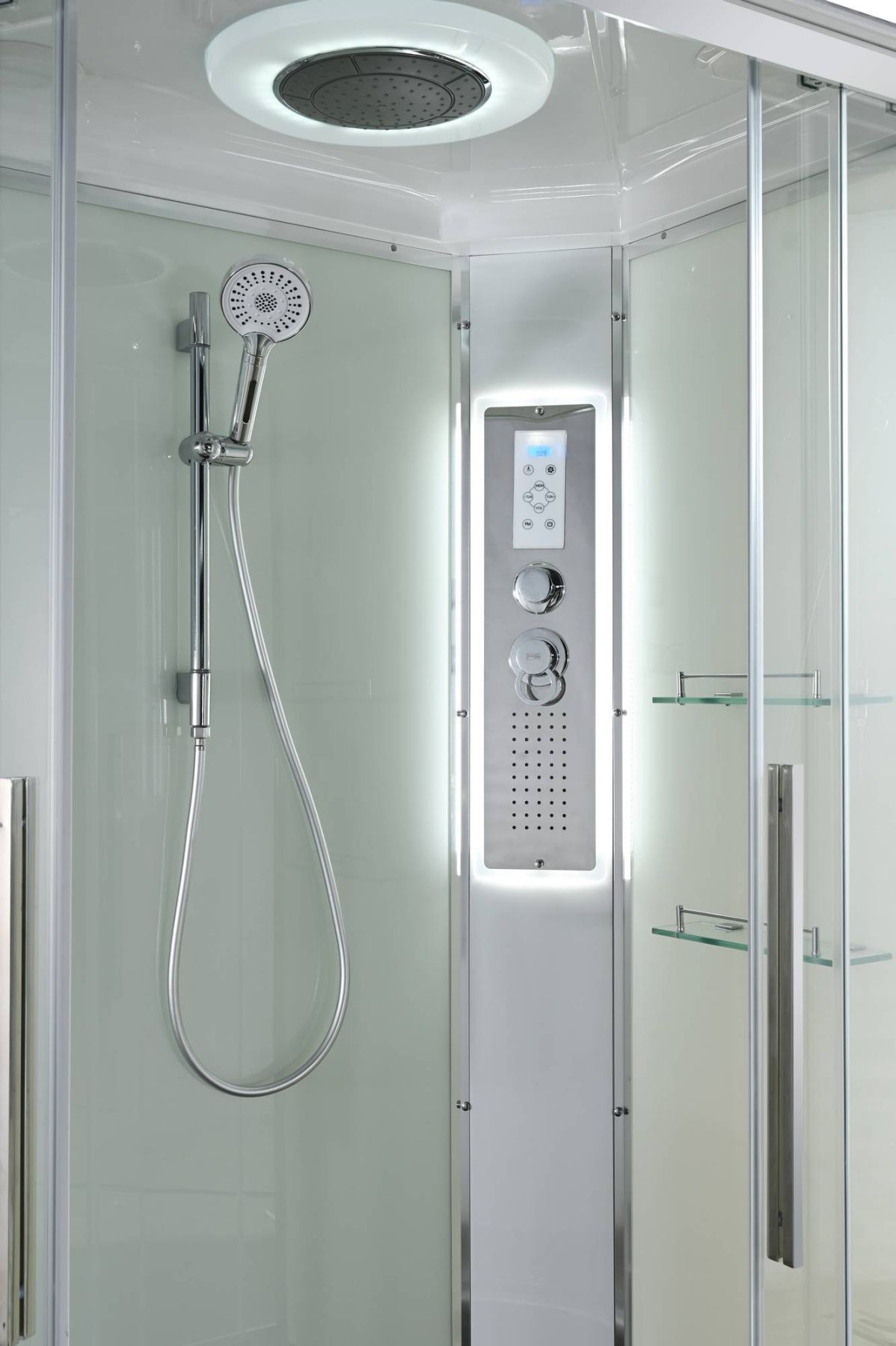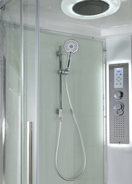 Стильная душевая кабина AvaCan EM2812RLEDT сочетает в себе высокую функциональность, практичность и надежность. При изготовлении применяется безопасное закаленное стекло толщиной 5 мм (прозрачное), надежно фиксируемое алюминиевым профилем. Сборка без силикона (увеличивает срок службы), внутренняя сборка(облегчает установку и ревизию; позволяет установить в ограниченном пространстве), смеситель резьбовой (без хомутов). Съемный экран поддона (позволяет осуществлять ревизию сифона). Цвет профиля хром. Двойные металлические ролики дверей (увеличивают срок службы).В комплекте : душевая штанга, две полочки , тропический (верхний) душ, арома-лейка с витамином С (картридж съемный),полимерная вставка в поддон(имитация дерева),сифон, ручки дверей из нержавейки , двойные ролики ,пульт сенсорный(Блютуз ,LED подсветка ,радио ,вытяжка),гидромассаж спины.