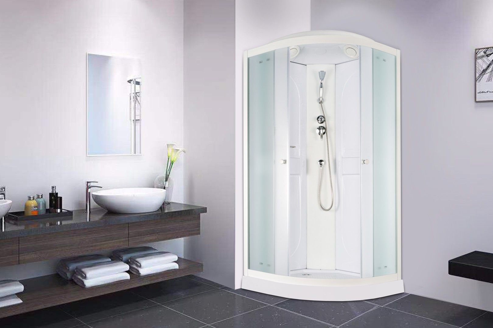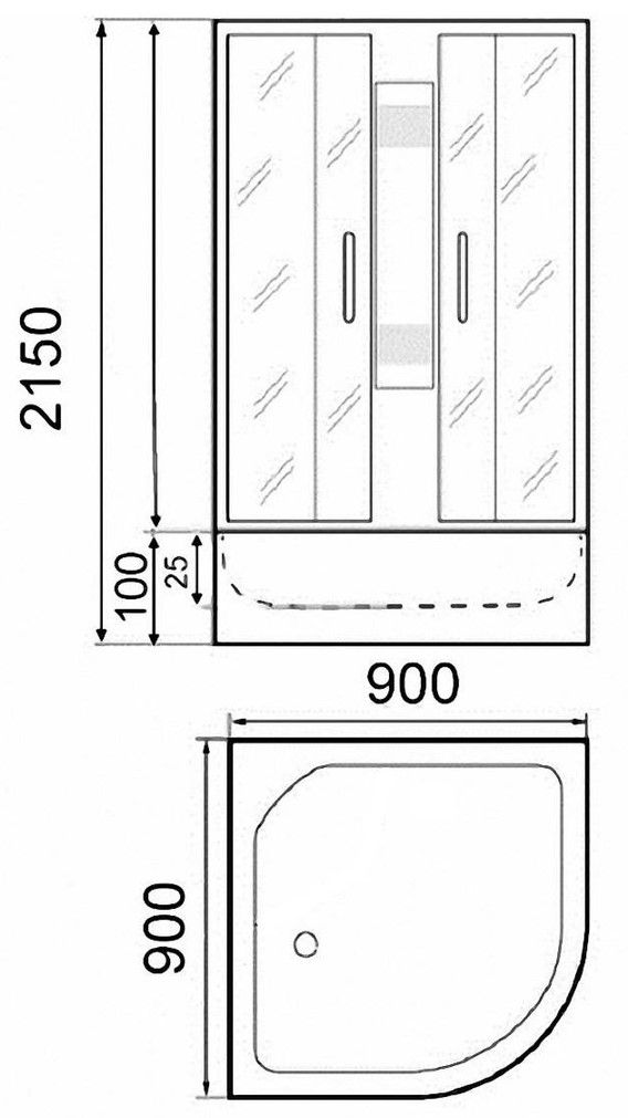 Поддон: низкий 10 см, полукруглый, с рельефным дном.