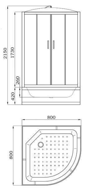 Комплектация: верхний душ ТРОПИК, ручной душ, сифон. Магнитные уплотнители под 45° не позволяют теплу выходить из душевой кабины, защищают помещение от просачивания воды.