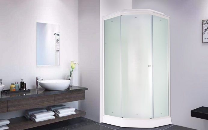 • Закаленное стекло, 4 мм. Матовое полотно скрывает человека внутри кабины, снаружи можно рассмотреть только контуры тела. Закаленное стекло устойчиво к случайным ударам. В случае биться полотно рассыпается на множество граней с тупыми концами, о которые нельзя порезаться.