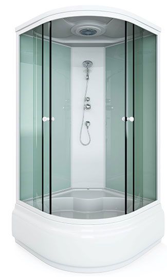 поддон высокий 45см фронтальные стекла: матовые фактурные задние стекла: белые матовые задняя панель: белый пластик белый алюминиевый профиль регулируемые ролики белые ручки для дверей 2-режимный смеситель ручная лейка слив с сифоном крыша с верхней лейкой