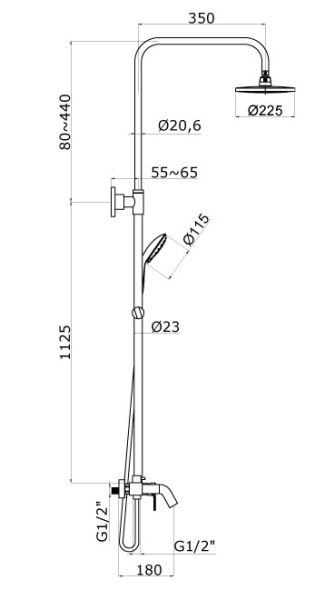 • Размер верхнего душа, мм 225