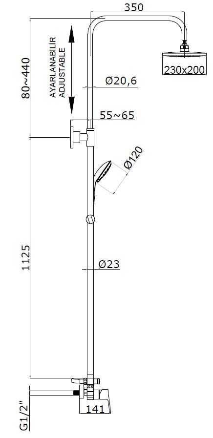 • Размер верхнего душа, мм 230