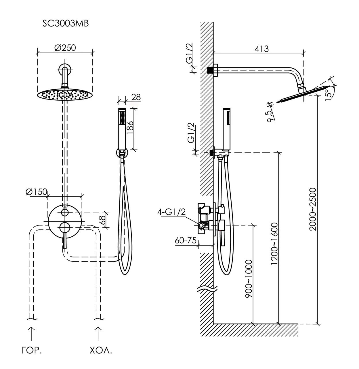 - Размер верхнего душа, см:25