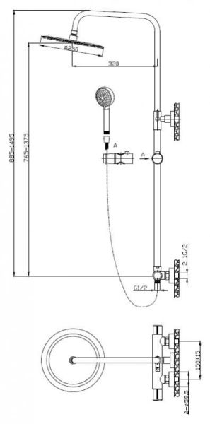 Дополнительная информация: регулируемая высота верхнего душа