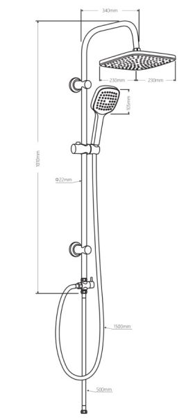 Стильные и большие квадратные лейки обеспечат комфортный напор воды, а слайдер ручного душа и крепление верхнего позволит настроить нужное положение.