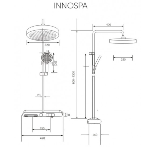 * верх.диск Ø320 мм, моб.лейка 3 режима;