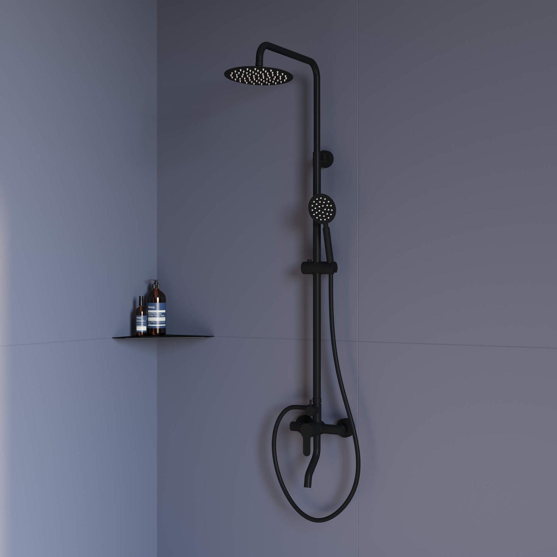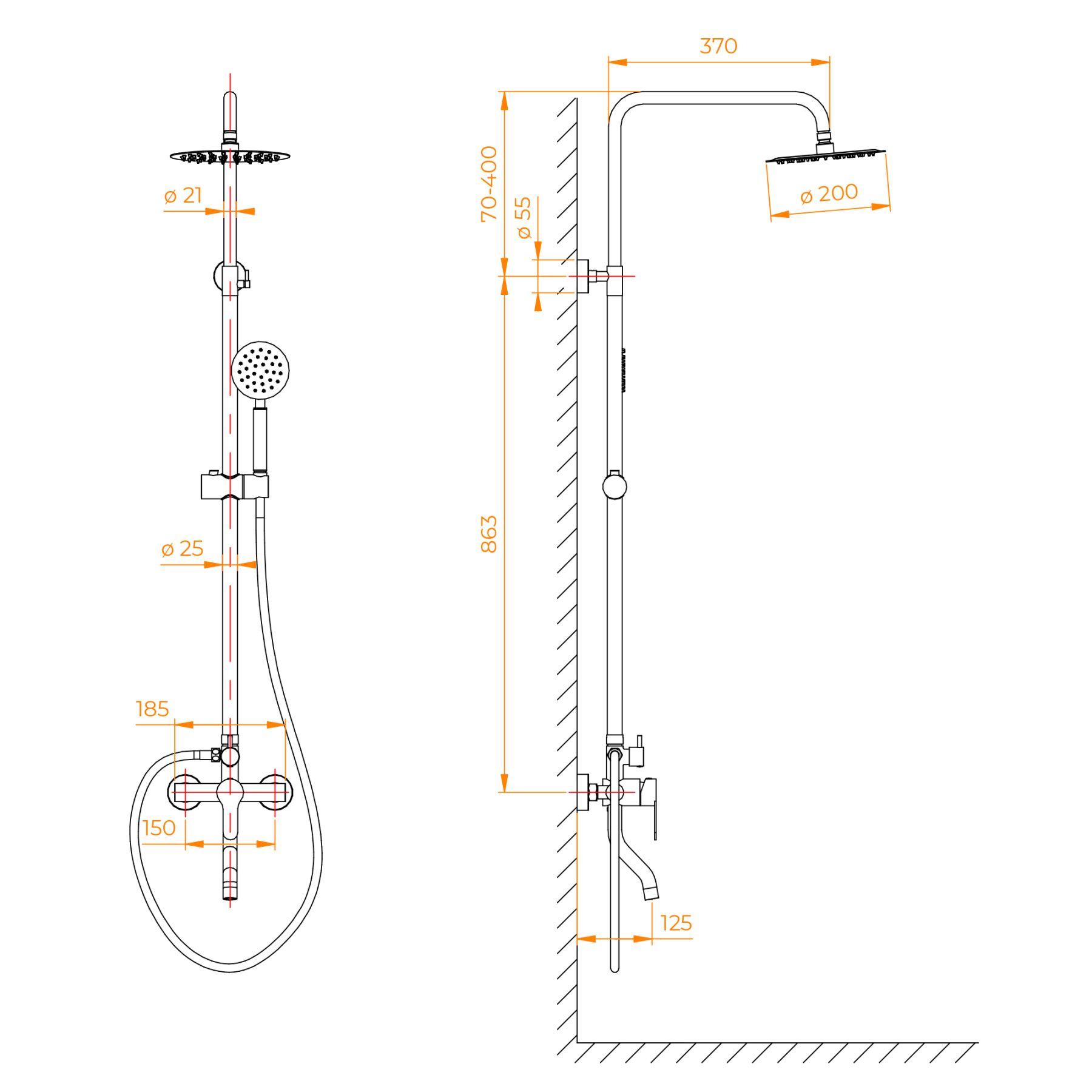 • Стальная штанга с регулировкой высоты головного душа