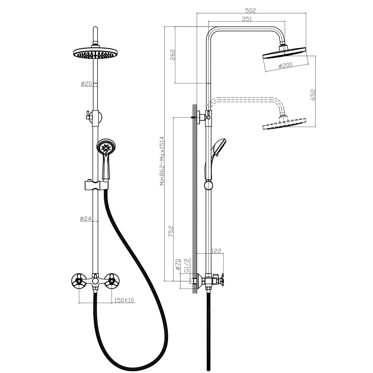 - Размер верхнего душа, см:20