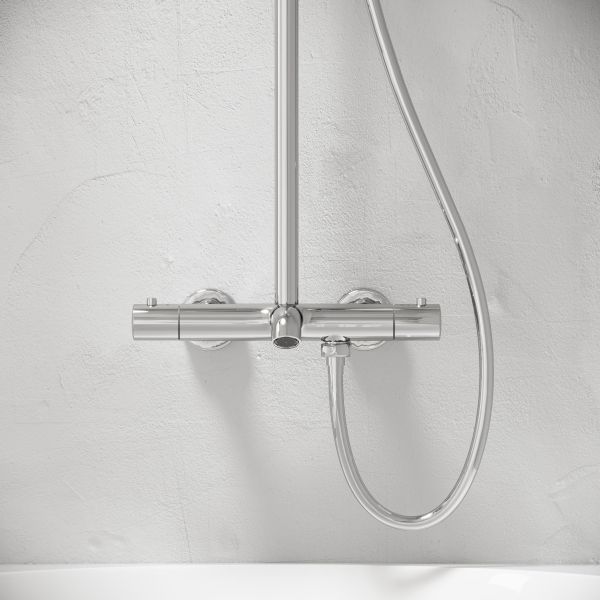 Душевая стойка с изливом и термостатом для ванны/душа Game, с регулировкой по высоте, цвет хром... Подробнее
