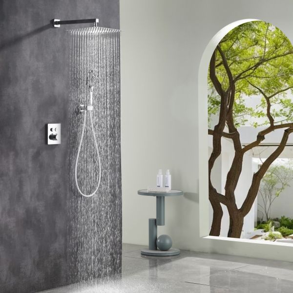 Готовое решение для душевой зоны скрытого монтажа датского производителя Black&White в цвете глянцевый хром. За управление давлением и температурой воды отвечает теромостатический смеситель постоянного потока , а для выбора режимов работы установлены две кнопки цилиндрической формы, расположенные в квадратном корпусе смесителя.Из потребителей доступен ручной душ с режимами , а также квадратная верхняя лейка на прямоугольном кронштейне. В дизайне изделия пересекаются квадратные и цилиндричсекие формы, которые гармонируют между собой создавая минималистичный облик, подходящий для большинства современных интерьеров