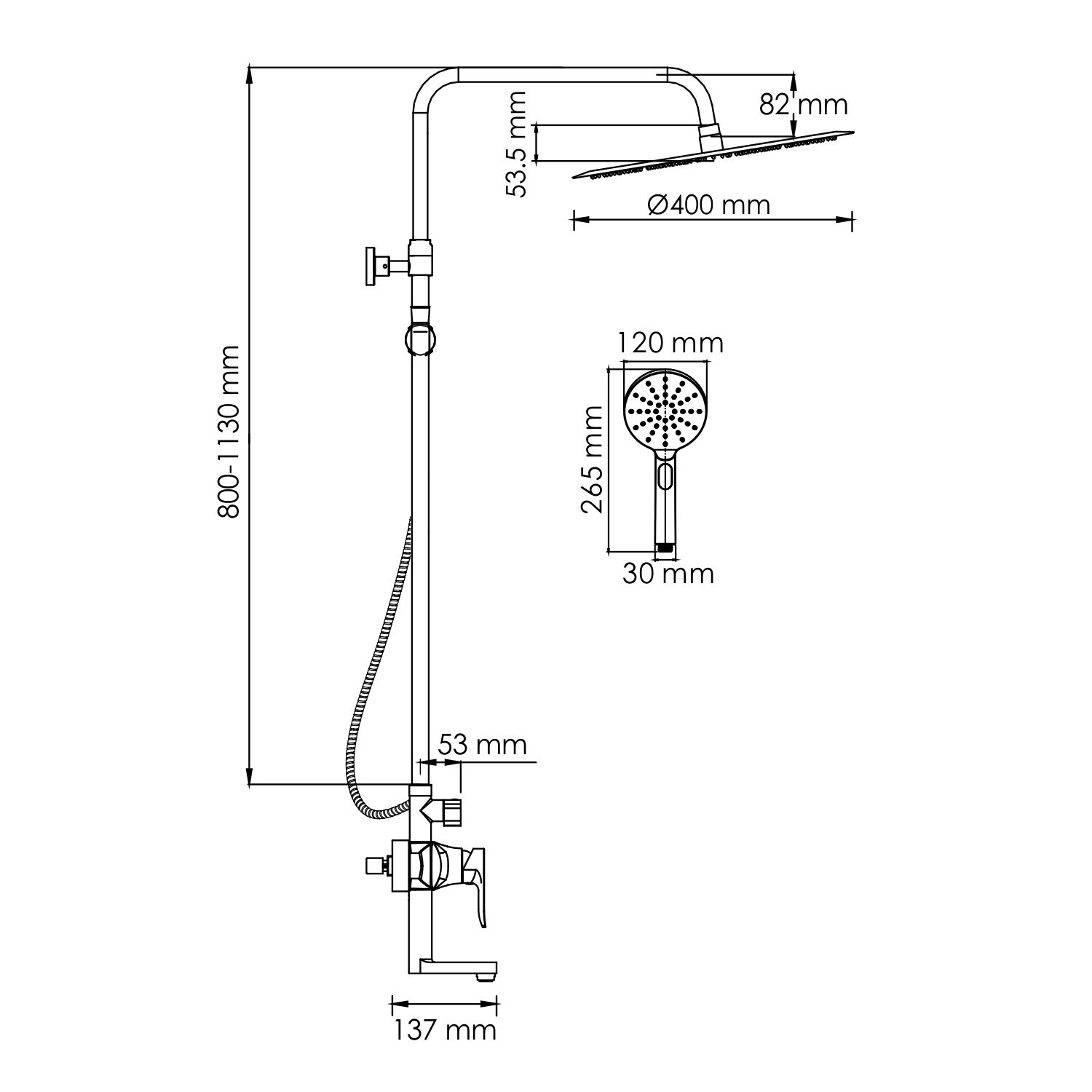 - Размер верхнего душа, см:40