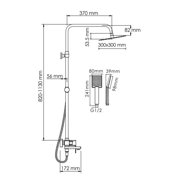 Стойка для душа, Ø 22 мм регулируемая по высоте