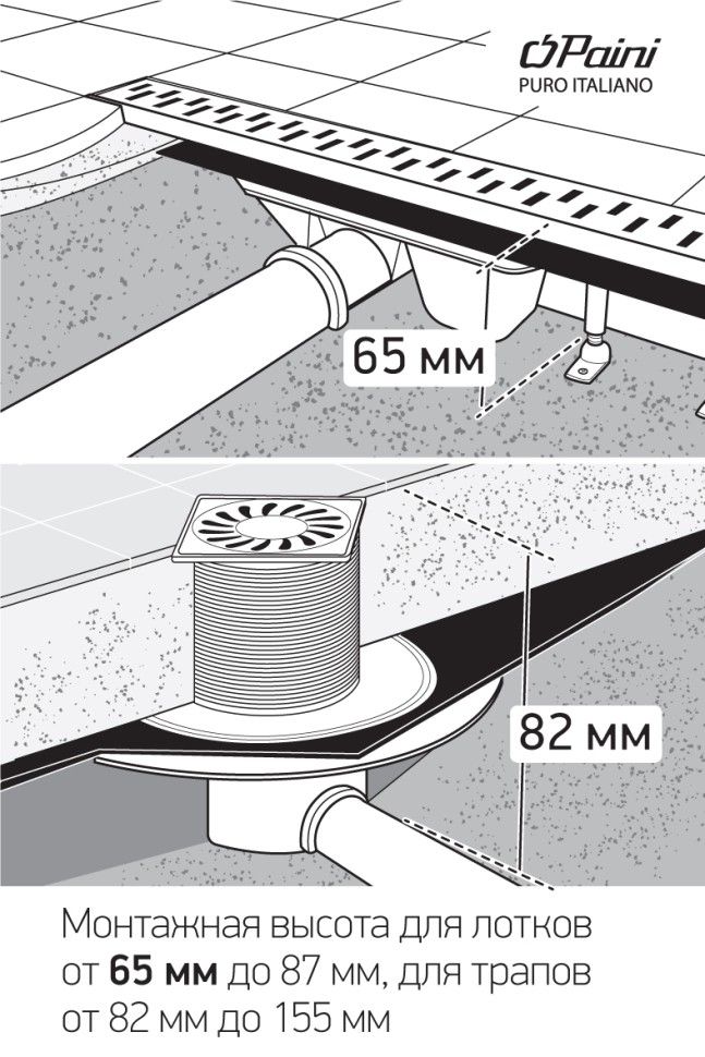 Безбарьерная среда в душевой – новый тренд, и душевой лоток с решеткой MEDIUM от PAINI восхищает стилем и комфортностью использования и установки. Горизонтальный выпуск облегчает монтаж, трубы можно устанавливать по полу, что сэкономит бюджет. Благодаря конструктивным особенностям душевые лотки не требуют высокой заливки пола, что максимально упрощает установку.Европейское качествоКачество, подтвержденное 25-летней гарантией производителя. Срок службы не менее 30 лет.Экономия за счет конструктивных особенностейМинимальная высота монтажа – 65 мм, не требует масштабной заливки пола и сложной установки. Ножки регулируются от 65 до 87 мм.Высокая пропускная способностьПропускная способность от 30 до 37 л/мин в лотках "ПАИНИ" не позволит воде задерживаться в душевой.Надежная защита от неприятных запаховКомбинированный затвор (сухой + гидрозатвор) не пропускает запахи в помещение, надежно защищая вас от неприятных сюрпризов. Такая конструкция сифона в душевом лотке считается самой универсальной и надежной защитой от запахов и бактерий.Разнообразие размеровРазмерный ряд лотков от 450 до 850 мм. Можно найти лоток, подходящий именно в ваш интерьер.Покрытие, устойчивое к повреждениямУстойчивое к ржавчине и известковому налету. Безопасность от накопления бактерий и особый глянец 24х7 для хромового покрытия.Корпус моделей в цвете черный (YO) защищен финишным цветным покрытием в технике порошковой окраски с использованием эпоксидных смол для большей устойчивости к повреждениям.Комплектация Переходник для выпуска D50 мм позволяет не задумываться о монтаже – подойдет на любую трубу. Гидроизоляционная лента в комплекте.
