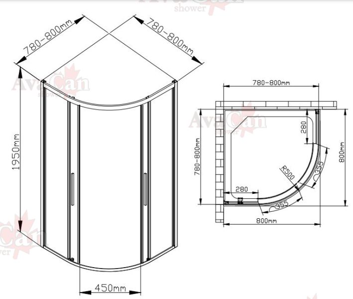 • Душевой уголок AvaCan HB 80 MT