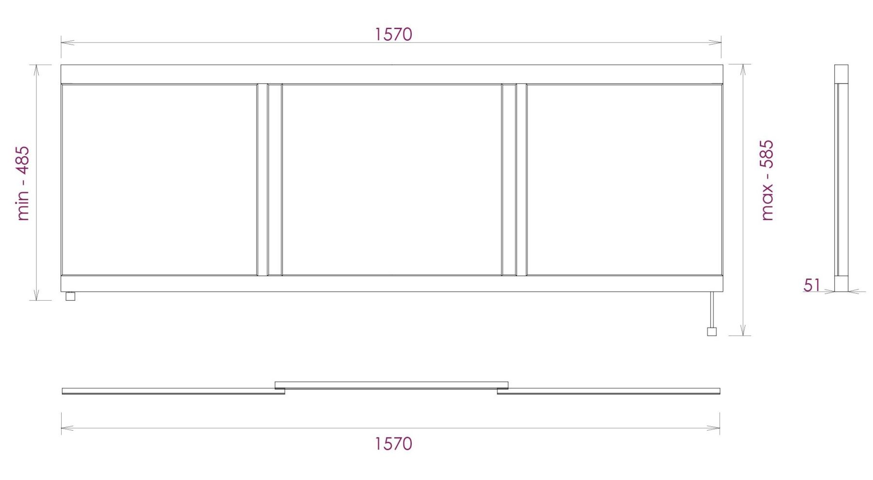 Ножки позволяют регулировать экран по высоте от 52 до 60 см, благодаря этому экран является универсальным и впишется в интерьер любой ванной комнаты.