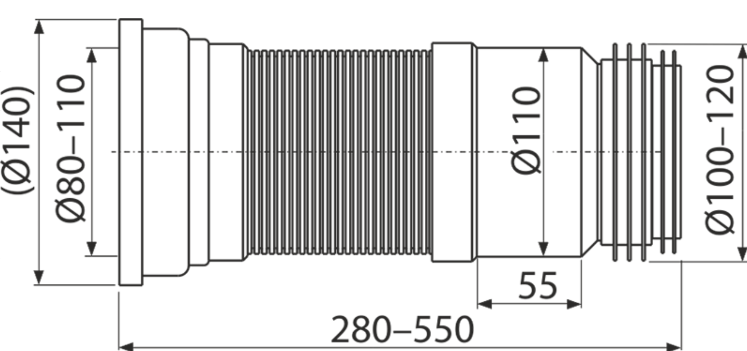 Гибкая подводка для выпуска унитаза AlcaPlast 28-55см A970 купить