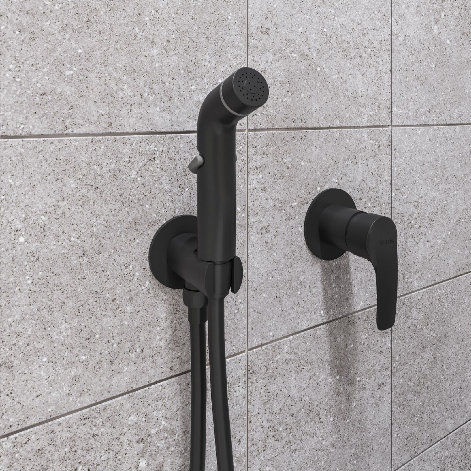 Cмеситель с гигиеническим душем Ray на 2 отверстия в трендовом черном цвете имеет универсальный дизайн и подойдет для различных вариантов интерьерных решений. Тонкий баланс плавных линий и строгой формы изделия позволяет придать ему удивительно гармоничный и завершенный облик. Смеситель скрытого монтажа Ray будет занимать минимум пространства туалетной или ванной комнаты, деликатно служа для решения важных гигиенических задач. В комплекте лейка и душевой шланг из ПВХ (1,2 м). • Смеситель IDDIS® прослужит долго благодаря надежному корпусу из прочной латуни, стойкому к коррозии, резким изменениям давления и перепадам температуры воды. • Плавный ход ручки и абсолютная точность регулировки температуры и напора воды — за счет качественного керамического картриджа Softap. • Гарантия на смесители IDDIS® – 10 лет. Гарантия на лейку и шланг – 3 года. (с) Авторский текст, июль 2021 г.