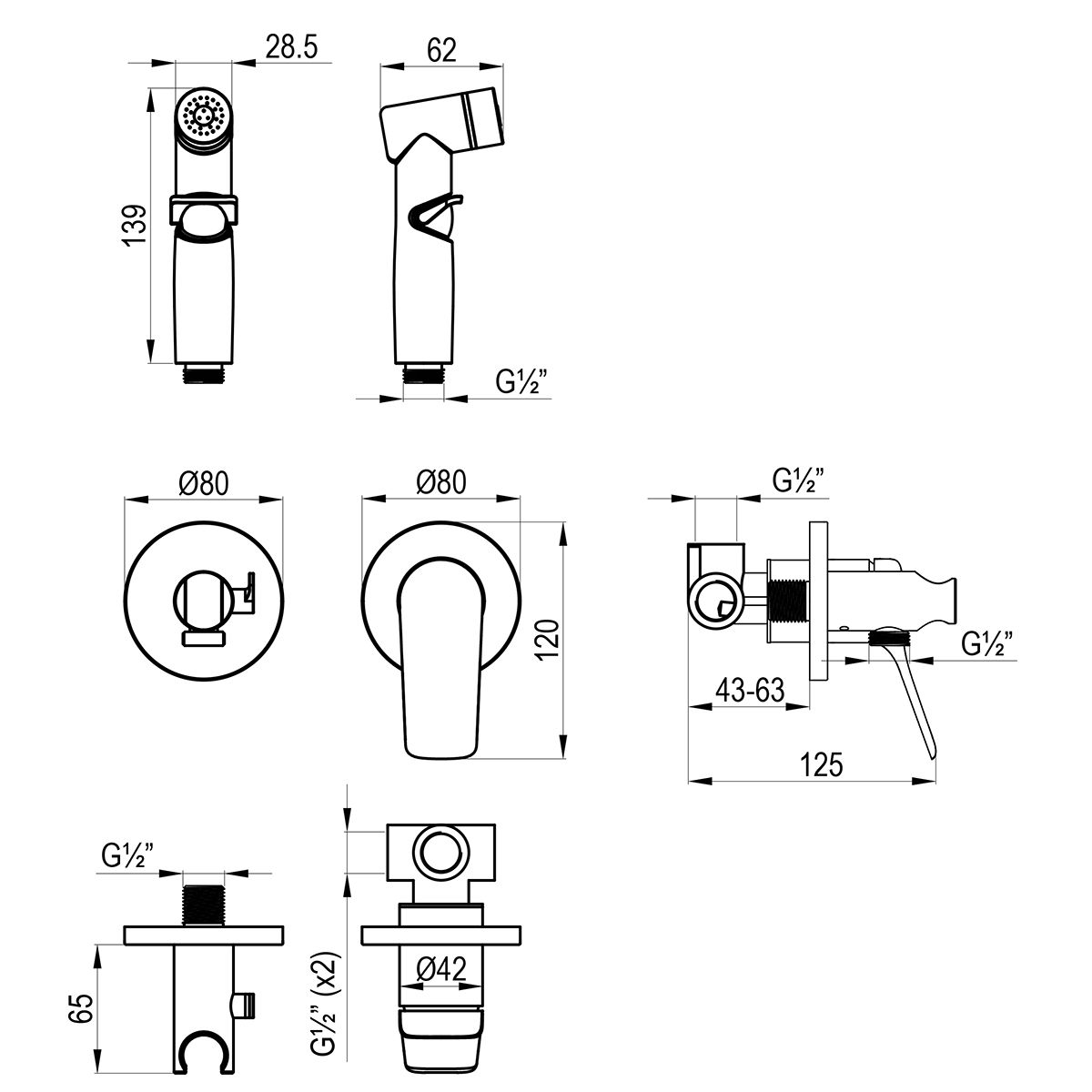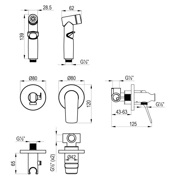 - Аксессуары в комплекте: лейка гигиенического душа с регулятором напора воды, подключение для душевого шланга с креплением для лейки, душевой шланг 1,2 м