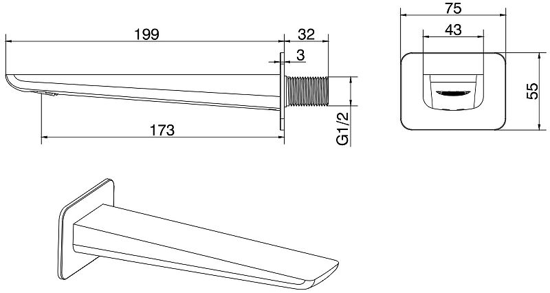 Длина излива: 17.3 см.