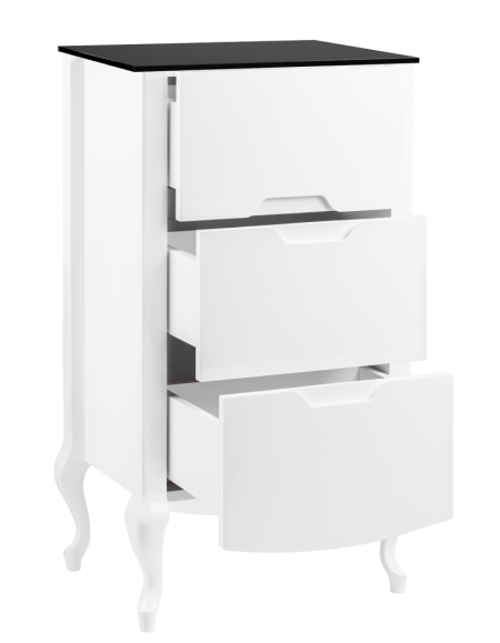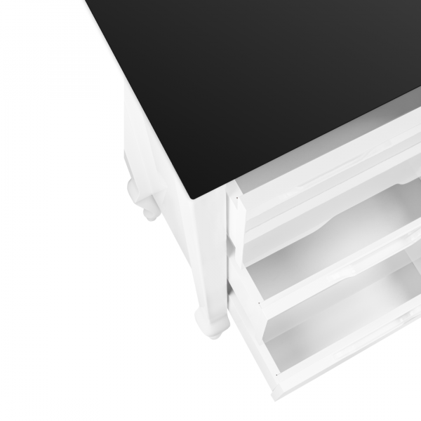 • Премиальная отделка: комбинация глянцевой белой эмали, массива бука и черной стеклянной столешницы