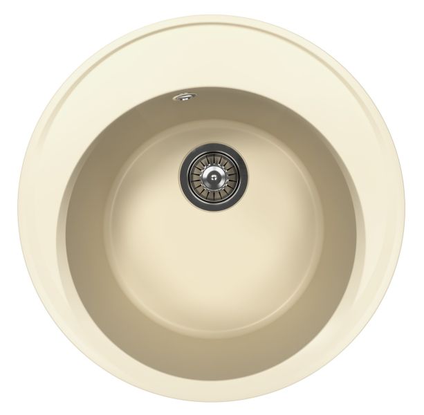 Круглая мойка с большой чашей для кухонного шкафа 45 смМатериал — кварцевый композитПредусмотрены дополнительные отверстия для установки аксессуаровГабариты нетто ( ДхШхВ) 510х510х217 мм
