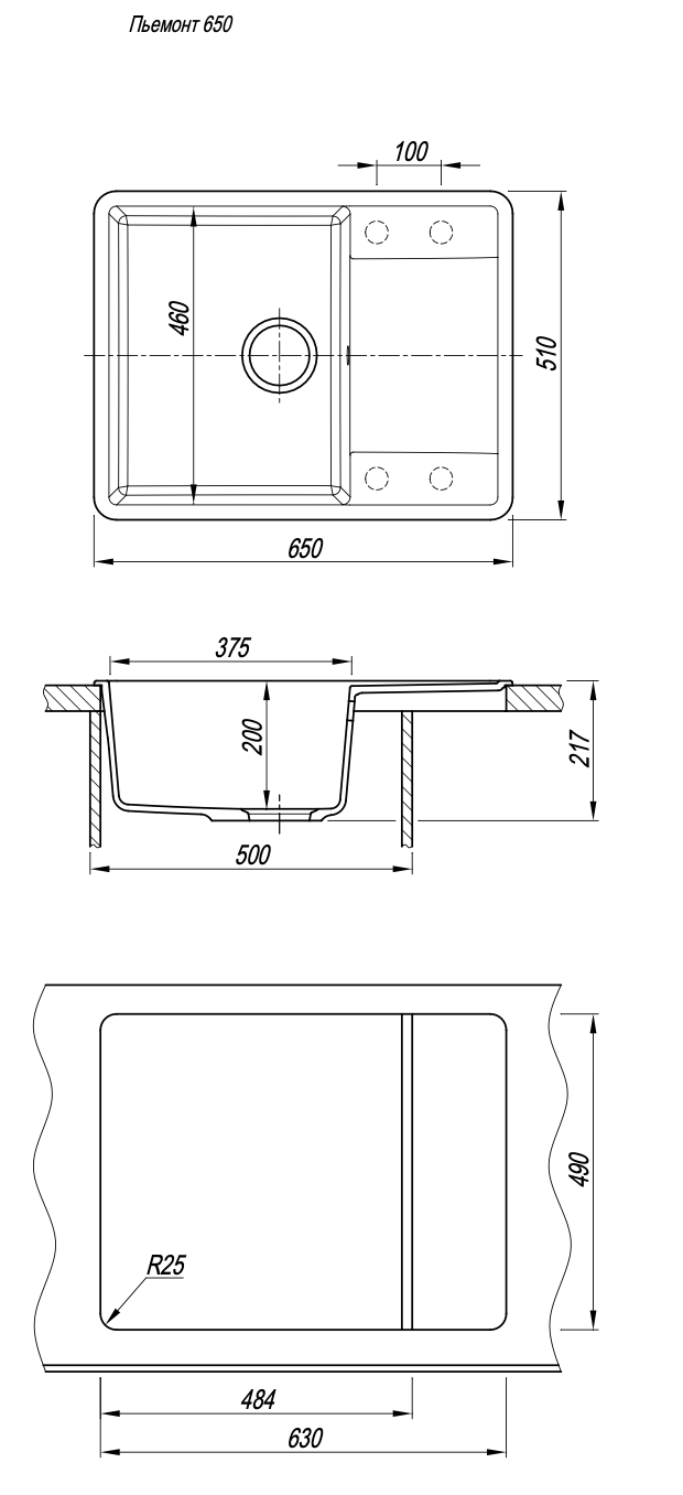 - Отверстия под смеситель:нет
