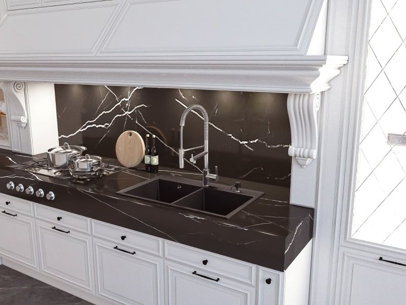 - Прямоугольная мойка с двумя большими чашами для кухонного шкафа 80 см