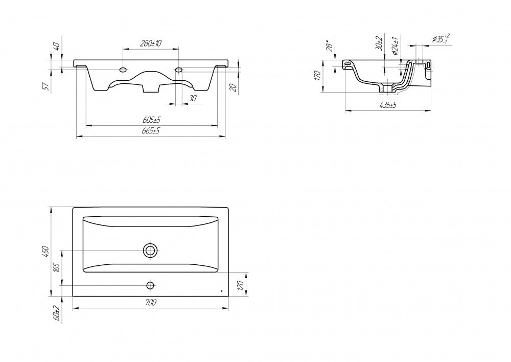 • Отверстия под смеситель: