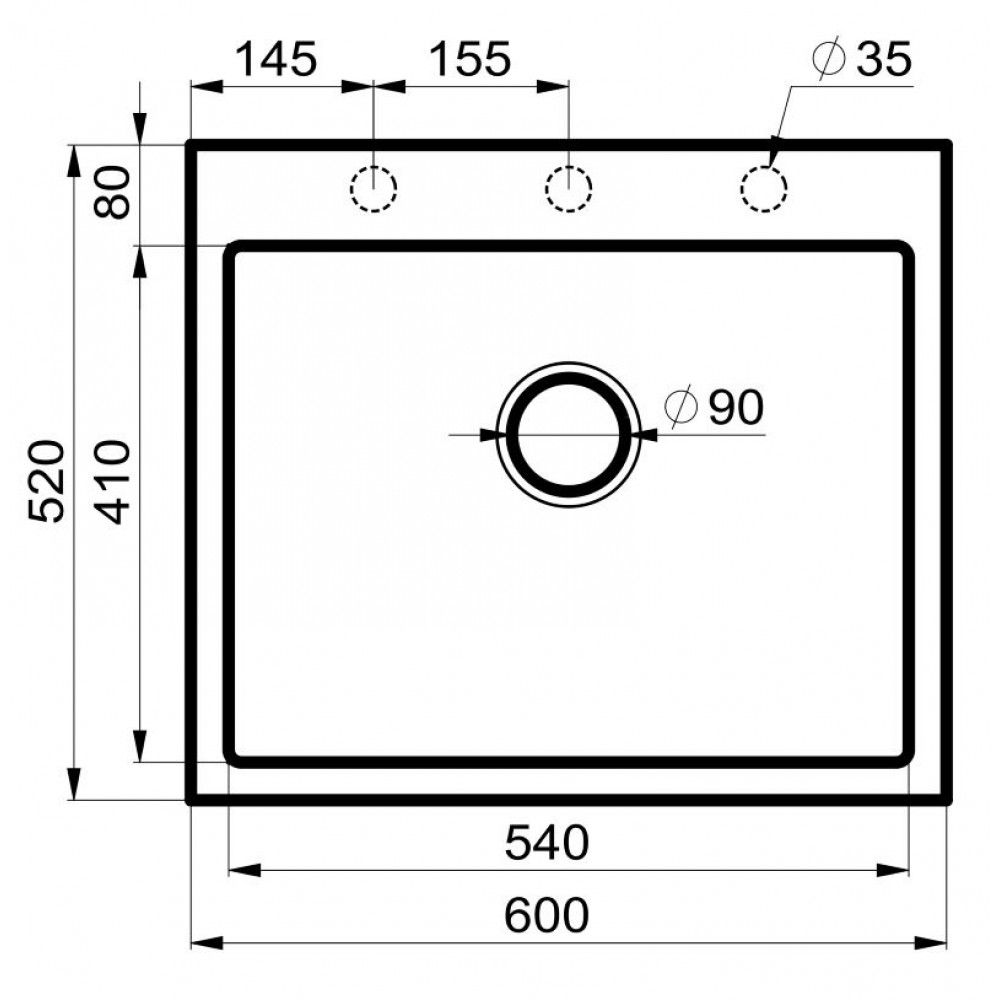 - Отверстия под смеситель:нет