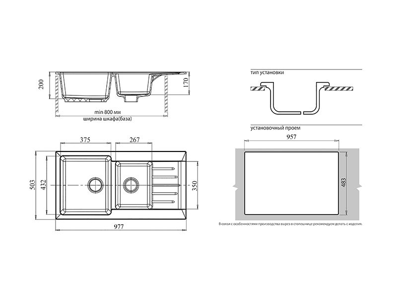 Установочный проем: 957*483 мм