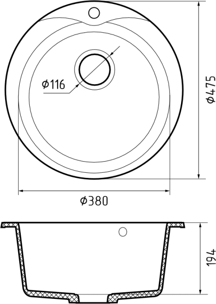 Размер чаши: Ø 380 * 194 мм