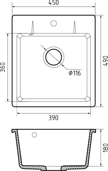- Отверстия под смеситель:нет