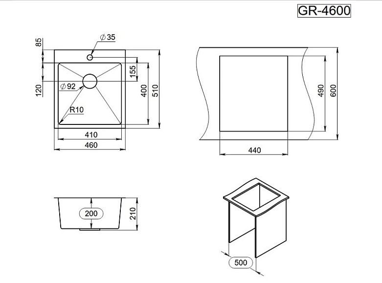 Мойка кухонная Granula 4600, СТАЛЬ САТИН