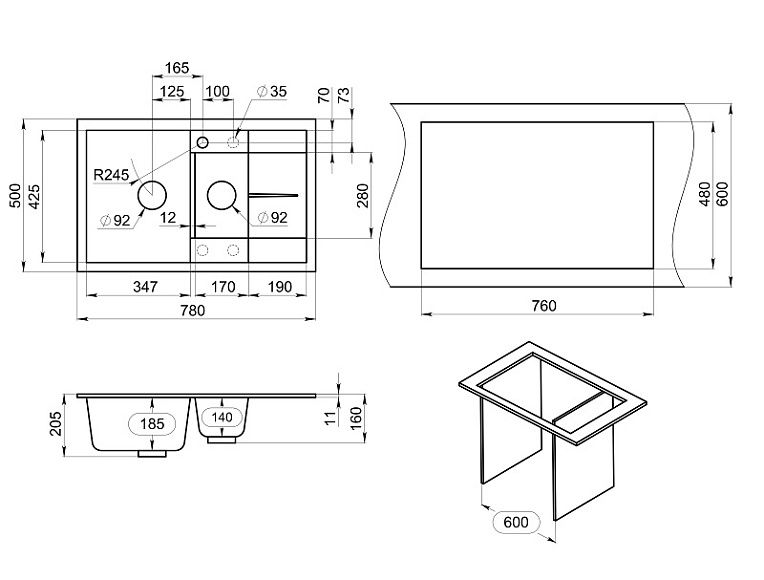 Мойка кухонная Granula 7802, ЧЁРНЫЙ Подробнее