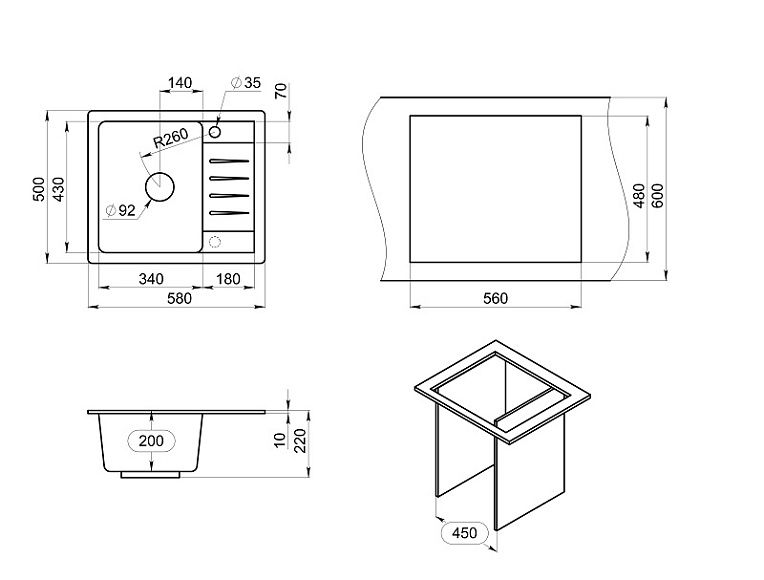 - Отверстия под смеситель:1