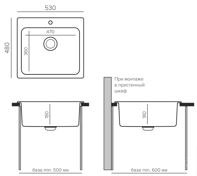 Широкая прямоугольная кухонная мойка из КВАРЦЕВОГО композита. Габаритные размеры 530*480 мм. (53*48 см.).Прекрасно впишется в кухонный шкаф от 50 см.( в случае, если ваша тумба крайняя, советует использовать не менее 60 см, чтобы с легкостью установить плинтус на столешницу). Одночашевая каменная мойка с заводским отверстием под смеситель. Диаметр сливного отверстия 115 мм. В мойку поместится КАЗАН, большая кастрюля или банка. В наличии в четырех цветах (серый, белый, черный, бежевый).Гарантия 3 года. В коллекцию QuartzBond вошли проверенные годами, не теряющие своей популярности, модели кухонных моек.Размеры мойки (ШхДхГ): 480х530х190 мм.