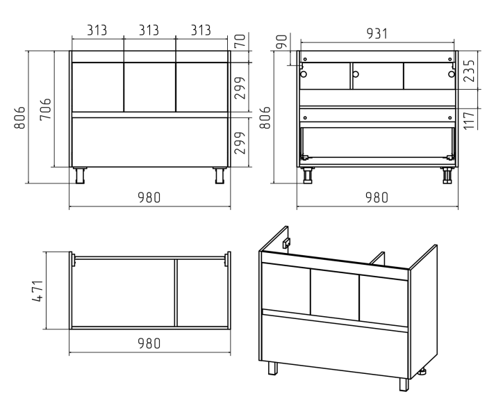 - Тип:тумба под раковину
