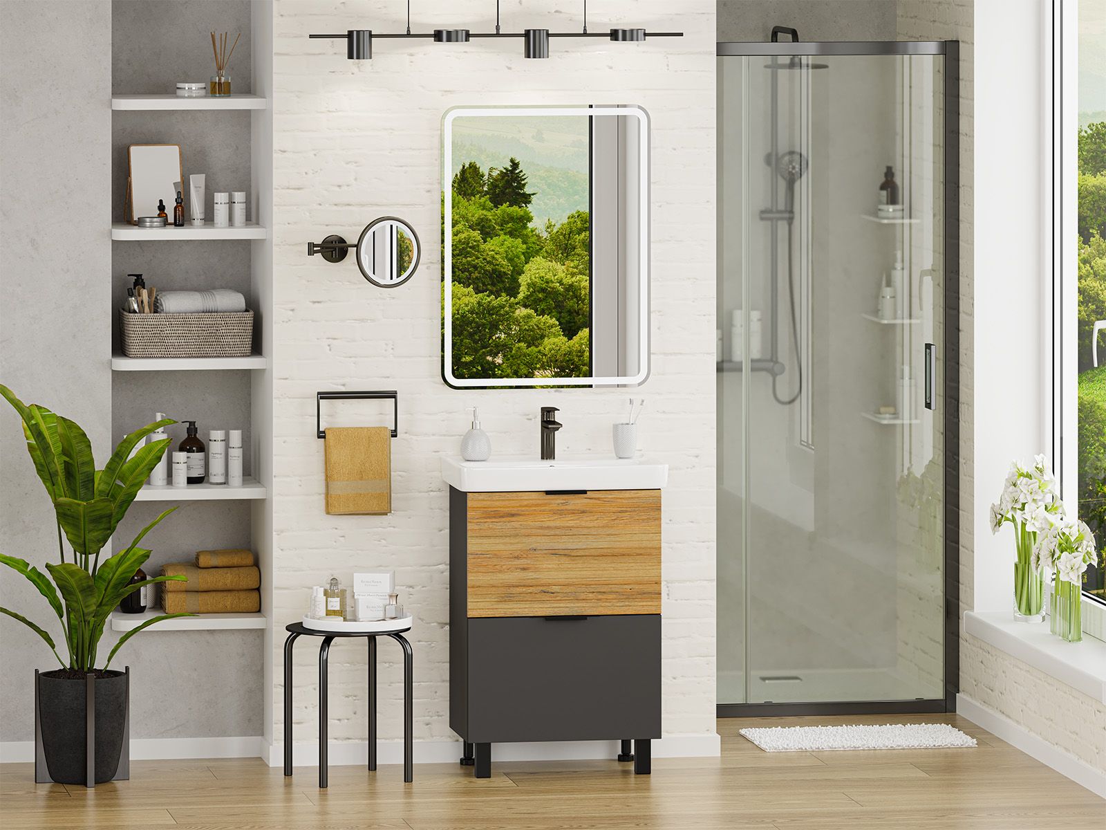 Напольная тумба под раковину Misty Форест 60см дуб Вотан/антрацит купить
