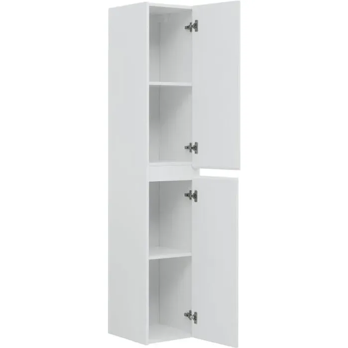 Шкаф-пенал для ванной Aquanet Nova Lite белоснежного цвета из влагостойкой ламинированной древесно-стружечной плиты выглядит нарядно. При ширине всего 35 см в нем, тем не менее, поместятся полотенца, банные халаты  или дополнительные пеномоющие средства, для которых найдется место на четырех полочках, скрытых от посторонних глаз за двумя дверцами, оборудованными петлями с доводчиками. Пенал универсальный. В базовой комплектации он предусматривает открывание в правую сторону, но при необходимости фасады можно перевесить для левого открывания.можно заказать дополнительно.