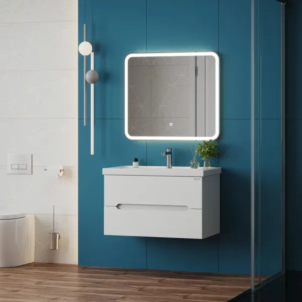 Подвесная тумба под раковину Onika Айленд 80 сочетает в себе стильный минималистичный дизайн, белую глянцевую поверхность и высочайшее качество исполнения.