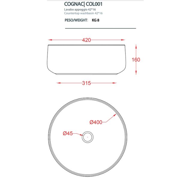 Раковина ArtCeram Cognac COL001 36 00 notte 42 см купить